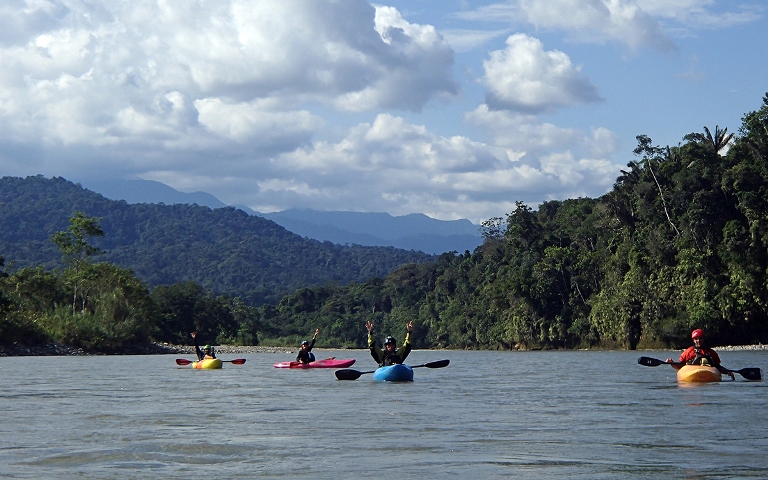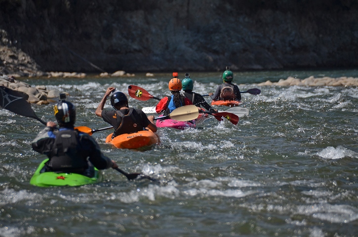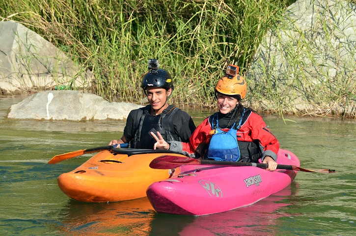 La parte mas exquisita de mis viajes por los ríos del mundo no sólo son los lugares increíbles a los que me lleva mi kayak, sino los espacios en los que comparto con las personas que reman a mi lado. Es un lazo importante el que se forja como equipo, una responsabilidad que asumimos de mantenernos seguros y apoyados. Se comparten instantes en el que se intercambian palabras mientras remamos agua plana o cuando estamos a punto de entrar a un rápido. Ellos están ahí para apoyarme y yo para apoyarlos, para aprender de ellos o que ellos aprendan de mi. Estas personas se convierten en mi familia mientras compartimos esos espacios mágicos por los ríos. Las fronteras de los países se sienten borrosas con cada final de viaje. Los adioses se convierten en nuevas propuestas de viajes y esta vez con un equipo de amigos nuevos. En cada viaje y en cada río, descubro nuevos aspectos de mi. Uno y el que mas me aprecio, la humildad que surge en mi cuando le pido permiso al río para navegarlo.