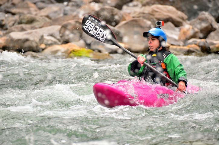 Me echo un poco de agua a la cara, despierto, enfoco la mente y sonrío. Ese momento suele cambiar dependiendo de las variables de cada viaje al río, conozco o no conozco el río, conozco cómo rema el equipo de personas con las que me encuentro, cómo está mi estado anímico, cómo está la temperatura y el color del agua o cómo es el entorno natural que abraza ese río. Todo influye en que esa sensación sea mas explosiva o mas suave. Sea cual sea la intensidad, no he encontrado otra actividad que genere esa reacción química en mi, de sentirme tan viva y tan en el ahora como cuando estoy por entrar al río en mi kayak.
