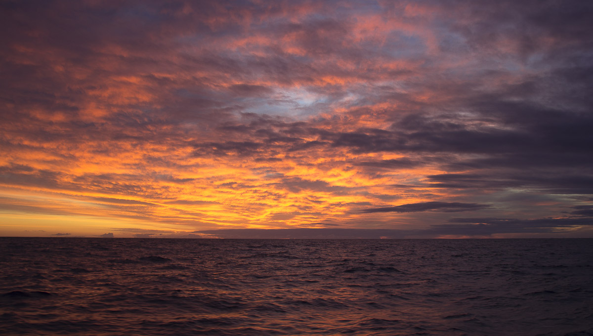 Conforme el dolor en mi dedo fue pasando, las inquietudes terrenales quedando millas atrás junto con mis mareos; empecé a sentir y a disfrutar de la inmensidad nuevamente. Donde nadie te habla, nadie te juzga, nadie te mira, nada de nada. Solo un par de buenos amigos sincronizados para vivir algo casi excepcionalmente único. Un mes entero en compañía del mar, ese compañero que en diferentes momentos te exhorta a leer, cocinar, maniobrar, pescar y mirar las estrellas.