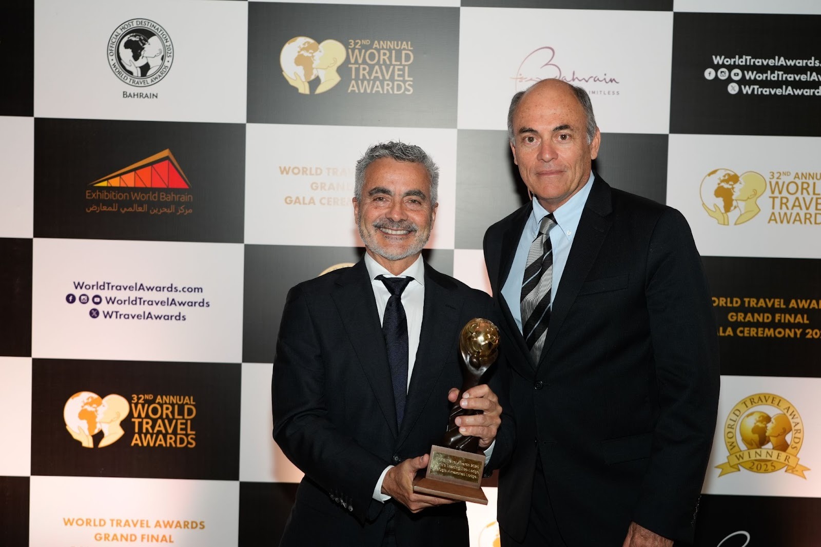 Eduardo Nycander y Carlos Wiese recibiendo el premio de Refugio Amazonas como el Worlds Leading Ecolodge en los World travel Awards