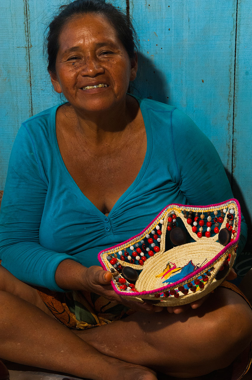 “Todos los días veíamos pasar los cruceros que iban y volvían de la Reserva Nacional Pacaya Samiria cargados de turistas, lo cuenta mientras va ordenando las semillas de huingo y achiote que utilizan para elaborar los collares y los otros productos que venden a los visitantes, entonces nos dijimos: ¿por qué no hacemos artesanía y los invitamos a parar?”. Y así fue. Las embarcaciones de la empresa Aqua Expeditions se detuvieron un día y a partir de entonces no han dejado de hacerlo.