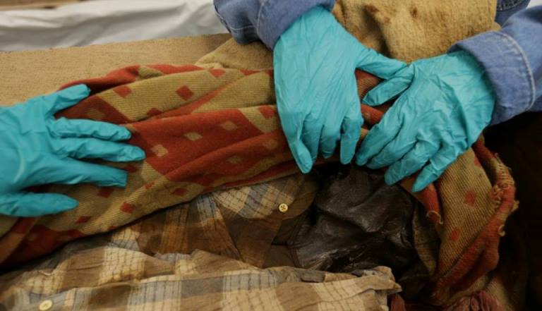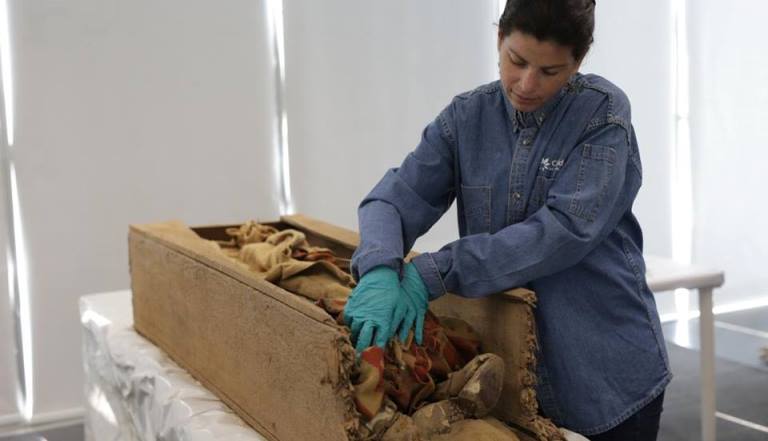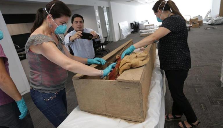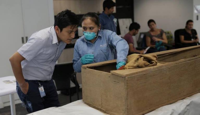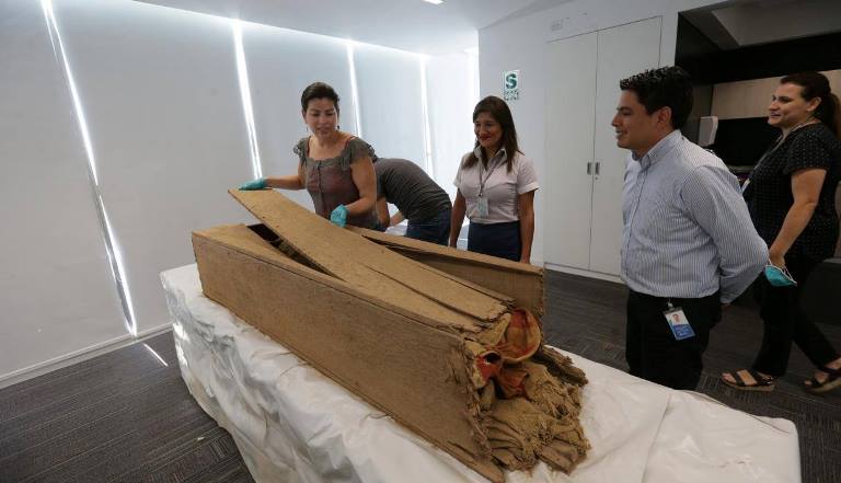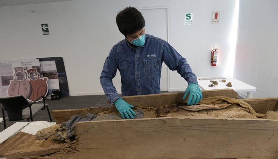 Fue encontrado en un cajón de madera, junto a otros dos entierros similares, por trabajadores de la empresa Cálidda, el pasado 22 de enero, mientras realizaban labores de instalación de tuberías de gas natural en Carabayllo. Por el buen estado de conservación, estos habrían sido sometidos a un proceso de momificación.